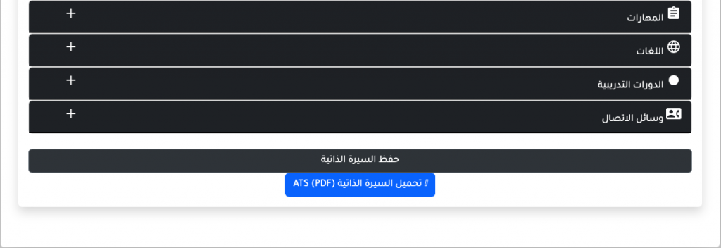 4. سهولة التصدير بصيغة PDF: بعد الانتهاء، يمكنك تصدير سيرتك الذاتية بصيغة PDF، وهي الصيغة المفضلة لدى معظم أنظمة ATS والشركات، لأنها تحافظ على التنسيق والشكل الأصلي للسيرة الذاتية عبر مختلف الأجهزة والبرامج.